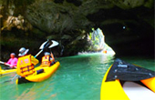 และไปถึงจุดสำคัญ ลงเรือแคนู (2 ท่าน ต่อเรือ 1 ลำ) พร้อมคนพายให้หนึ่งท่าน นำท่านเข้าชม ความสวยงาม ตามธรรมชาติ ถ้ำหินปูน หินงอก หินย้อย ทะเลสาบในภูเขา ทะเลแหวกในถ้ำ และอื่น ๆ อีกมากมาย |