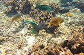 | 10.00 น. | อ่าวม่วง ริมฝั่งขวา ฝูงปลานกแก้วเป็นพันๆ ฝูงปลาเล็กๆ เป็นหมื่นๆ แนวปะการังน้ำตื้นจัดจนติดริมตลิ่ง |