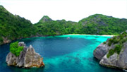 เกาะหัวใจมรกต (Cock's Comb) นี้คือเกาะที่มี Lagoon (ทะเลสาบที่มีน้ำทะเลเข้าถึง) อยู่ในภูเขา มีผนังกั้นและมีทางลอดเข้าไปในลากูน ครับ